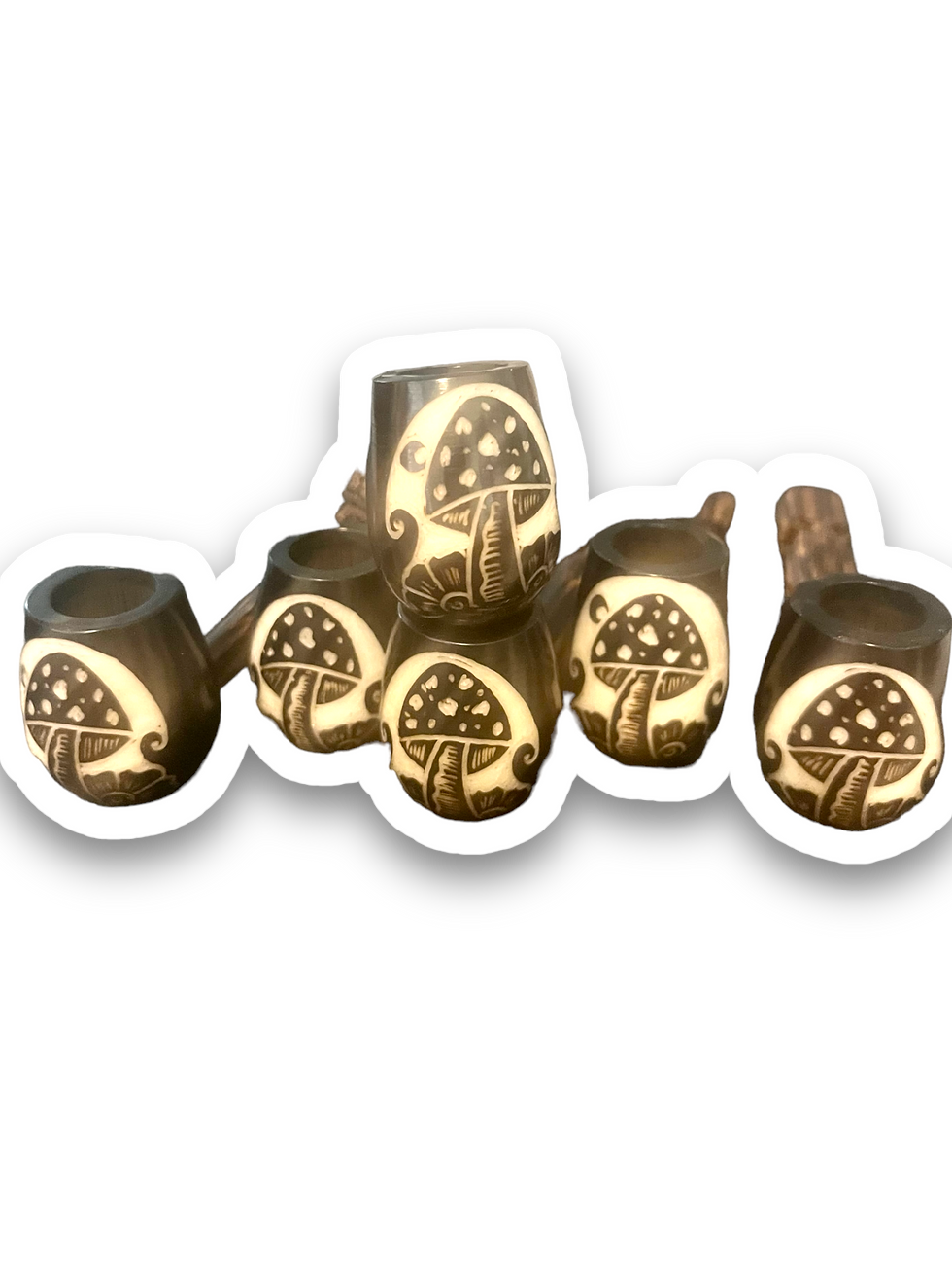 Experience an eco-friendly way of smoking Cannabis with our biodegradable Tagua Coconut Seed Pipes. Our international talent and beautiful craftsmanship bring the natural beauty of the Amazon in Ecuador to the mainstream. Our pipes are made from locally harvested Tagua Seeds and crafted by women into original ecological pipes. Tagua nuts, from the Tagua Palm Tree, are a practical and sustainable alternative to animal ivory. They can be used for a variety of purposes including jewelry, inlay work, buttons, miniatures, scrimshaw and more. Tagua is naturally hard and can be turned on a lathe or carved with rotary burrs. The finished product can be stained, buffed or polished. Each nut has a natural void within it that varies in size and cannot be determined until it is cut open. The nuts vary in size from 1-3/8" to 1-3/4" in diameter and come in bags of five."
